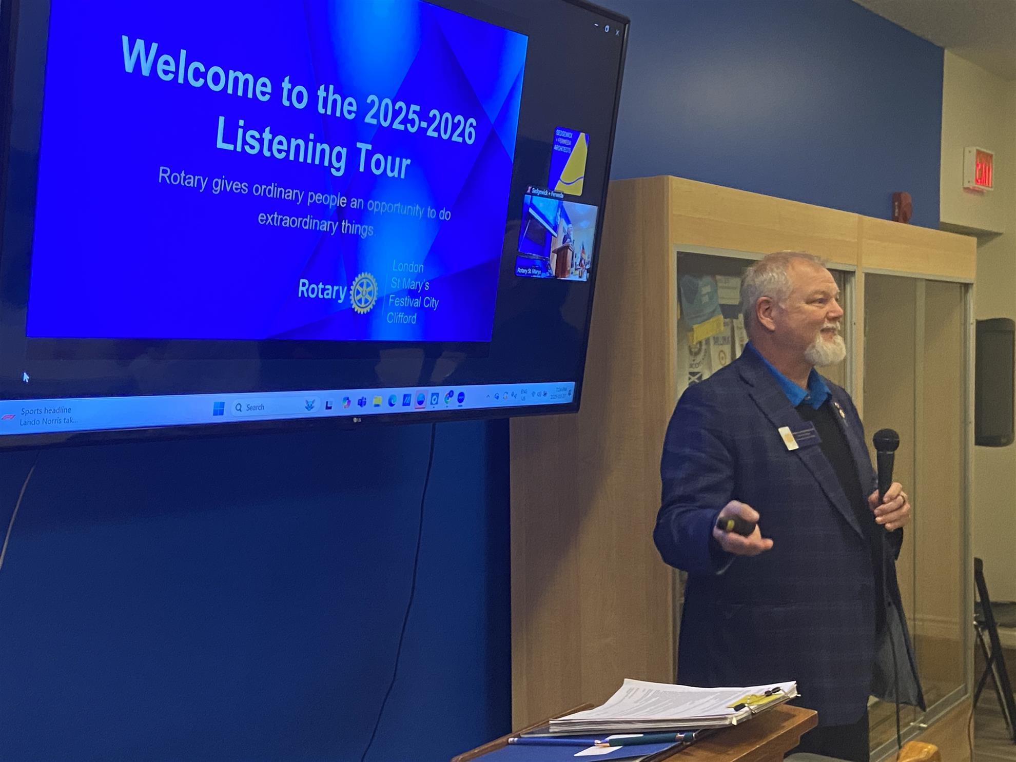 Over the past year, our club has supported projects such as the Cadzow Park Splash Pad, Rotary All Wheels Skate Park, Meals on Wheels, Nourish Equal Access Food Market, the Rotary Hospice Stratford Perth, youth scholarships, and the G.O.A.L.S. Breakfast Program. We continue our international efforts in Kenya, Uganda, and in Rotary’s global campaign to eradicate polio.