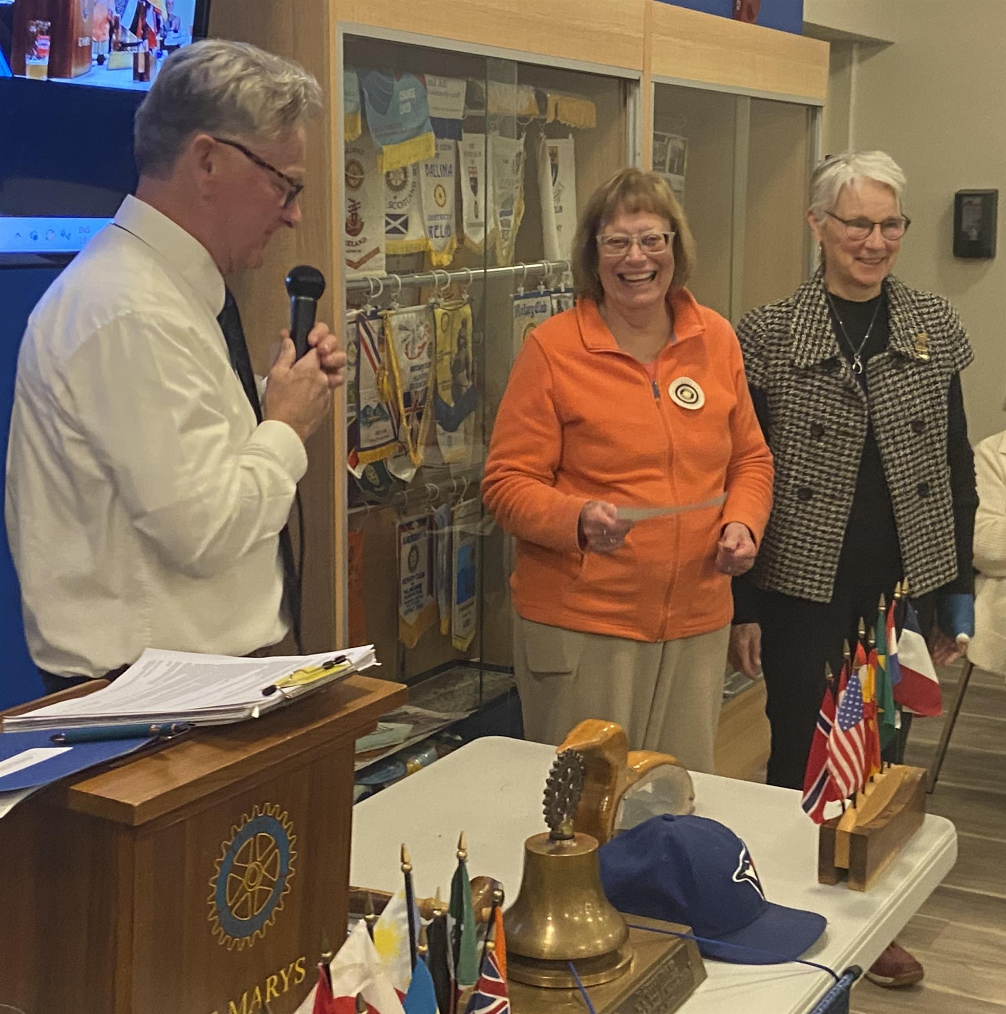 President Ed presented a cheque to Marie Stevens and Wendy Aitken representing Inner Wheel for their efforts related to Centennial Dinner.